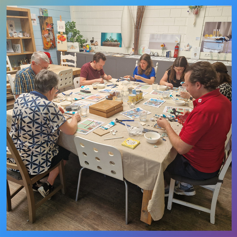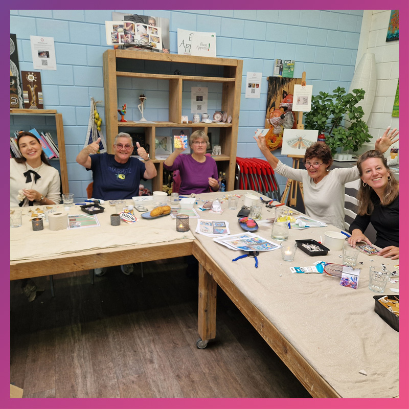 Of het nu gaat om een bedrijfsuitje of een creatieve activiteit als break tijdens een heidag, samen iets maken zorgt voor verbinding, ontspanning en plezier.